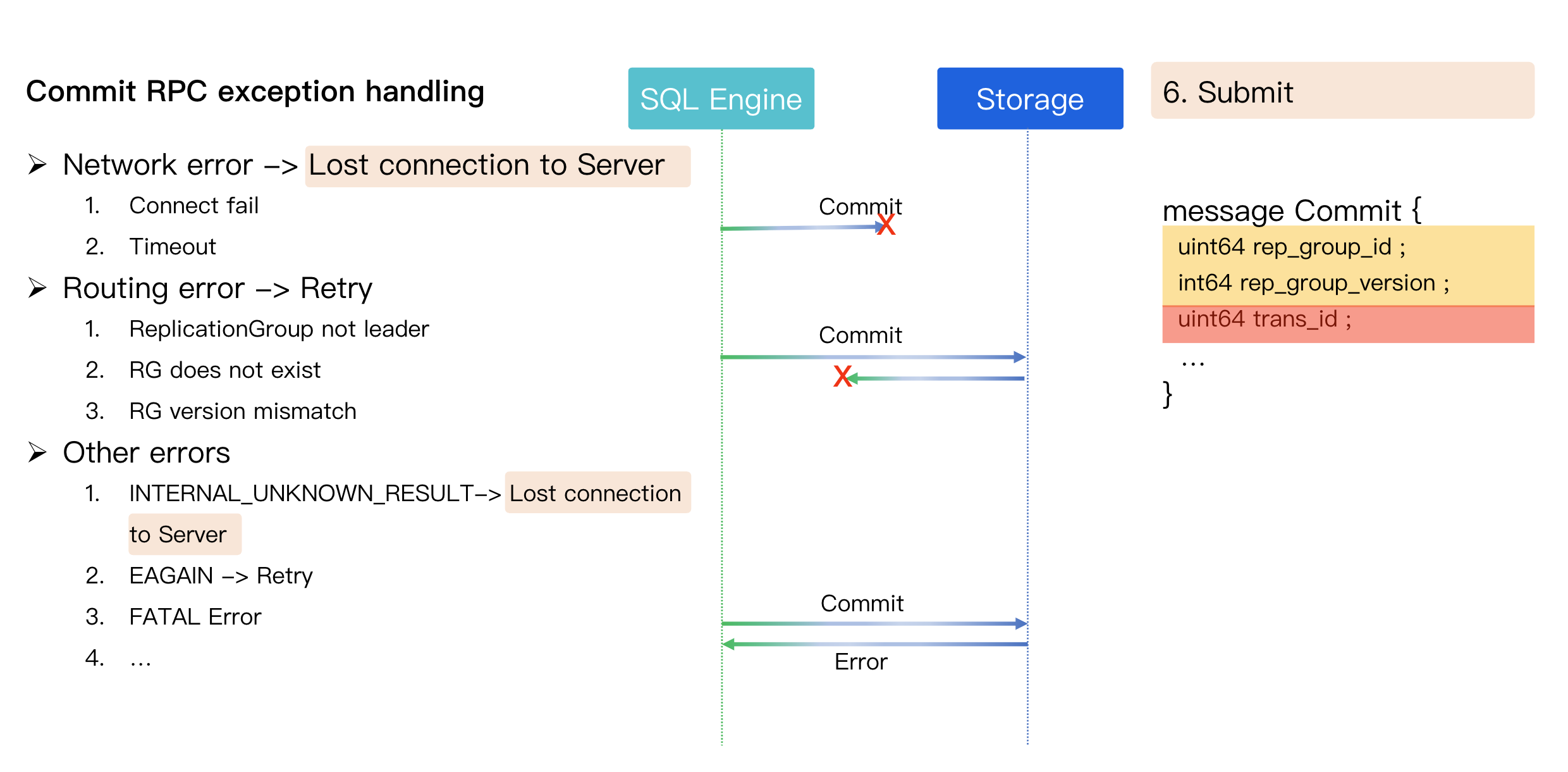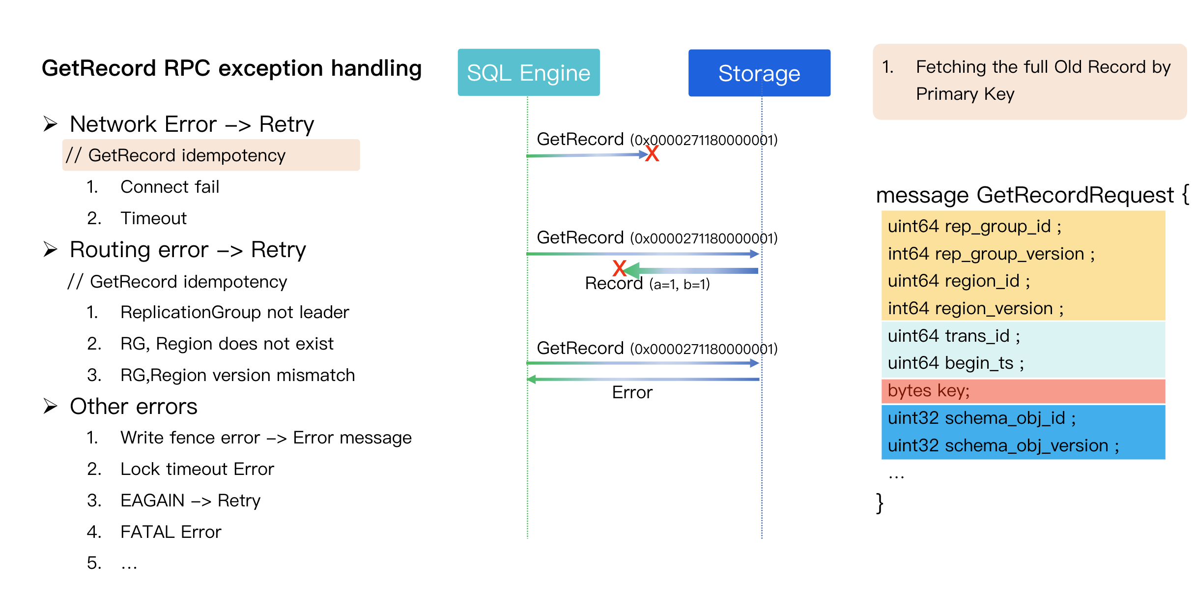 Scenario: The SQL Engine (client) knows the RPC failed but cannot distinguish the exact cause (e.g., request never arrived, response was lost, or the storage node was too slow).
