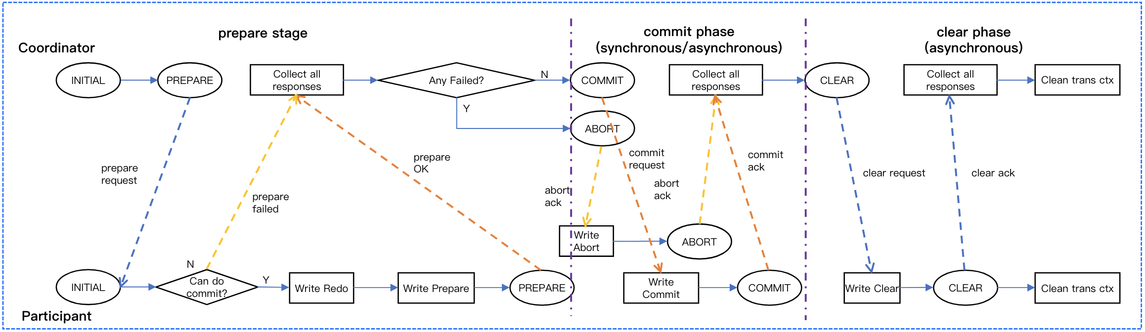 RPC rounds | 2 rounds: prepare, commit | 3 rounds: prepare, commit, and an asynchronous clear phase |