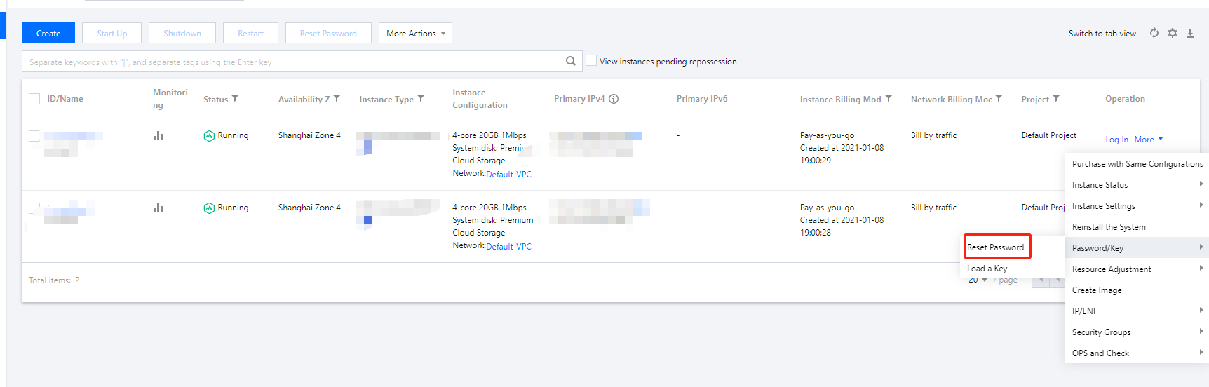 '실행 중' 상태의 인스턴스는 콘솔에서 인스턴스 비밀번호를 재설정하는 과정에서 인스턴스가 비활성화됩니다. 데이터 손실을 방지하기 위해 사전에 작업 시간을 계획하고 서비스 사용량이 적은 시간대에 작업하여 영향을 최소화할 것을 권장합니다.