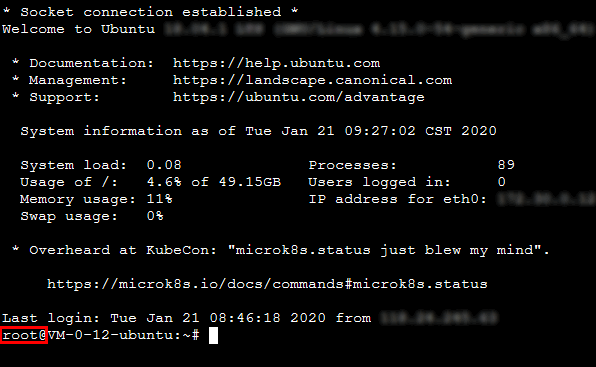 1. ubuntu 계정으로 CVM에 로그인합니다.