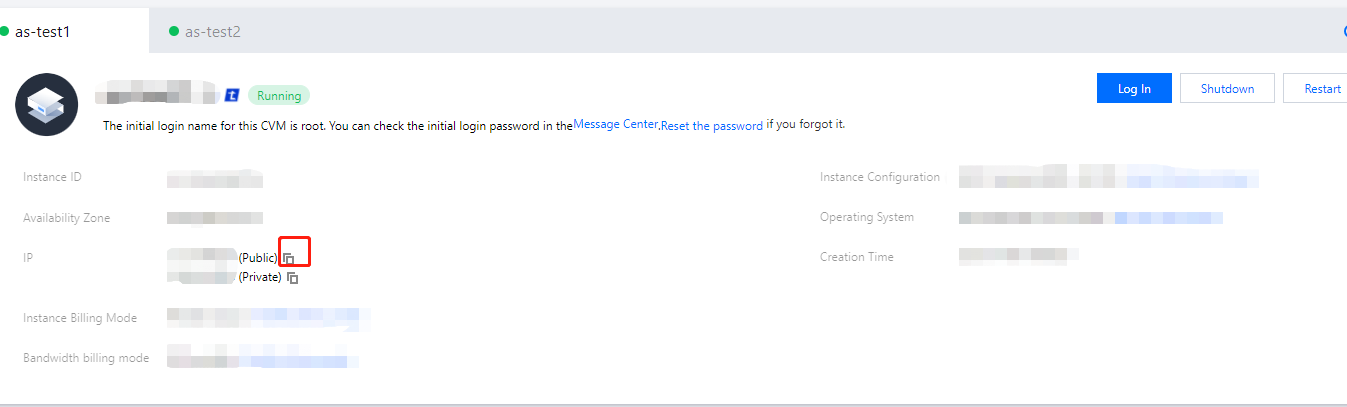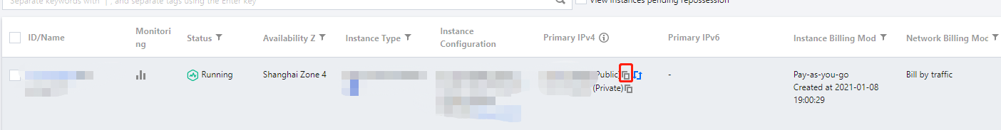 ifconfig (Linux) 또는 ipconfig (Windows) 명령어 사용) 공용 IP 주소는 나타나지 않습니다. 인스턴스 내부에서 인스턴스의 공용 IP 주소를 확인해야 할 경우 인스턴스 메타데이터를 사용하여 가져오기를 참고하십시오.``