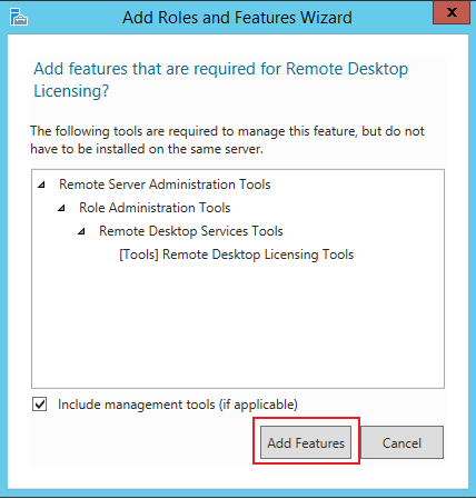 10. 아래 이미지와 같이 ‘원격 데스크톱 라이선싱에 필요한 기능 추가’ 창에서 기능 추가를 클릭합니다.