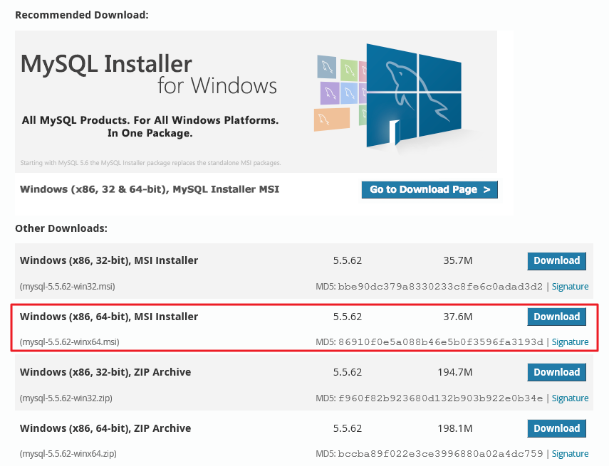 2. CVM에서 브라우저를 열고 https://dev.mysql.com/downloads/mysql/5.5.html#downloads 를 액세스한 후 MySQL 설치 패키지를 다운로드합니다. 아래 이미지를 참조하십시오.