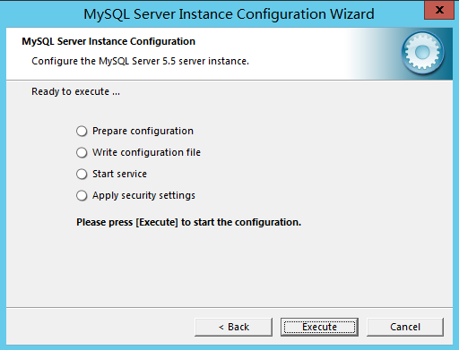 11. [Execute]를 클릭하고 MySQL를 구성합니다. 아래 이미지를 참조하십시오.