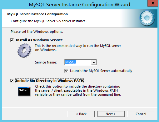 9. [Install As Windows Service]와 [Include Bin Directory in Windows PATH]을 선택하고 [Next]를 클릭합니다. 아래 이미지를 참조하십시오.