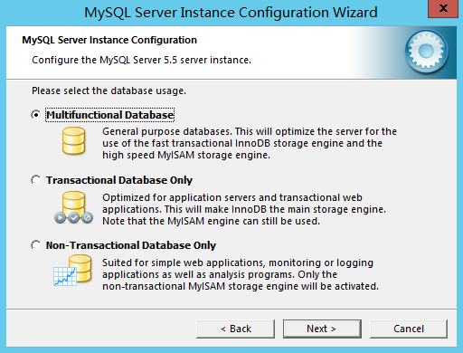 Non-Transactional Database Only(비 트랜잭션 데이터베이스만 처리)은 InnoDB 스토리지 엔진 사용을 전면 금지하고 모든 서버 리소스를 MyISAM 스토리지 엔진에 보냅니다. InnoDB 을 사용하지 않는 사용자에게 추천합니다.