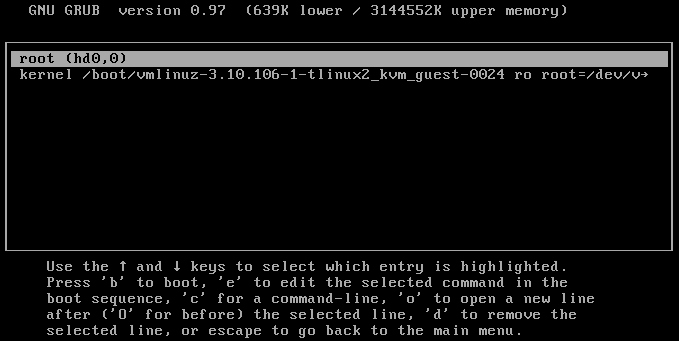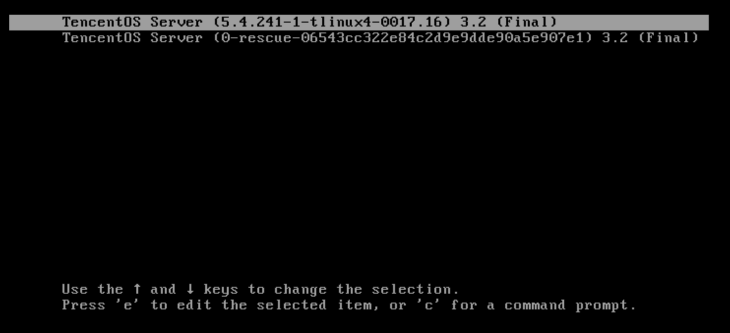 1. grub 모드 인터페이스에서 커널을 선택합니다. 다음 이미지를 참고하십시오.