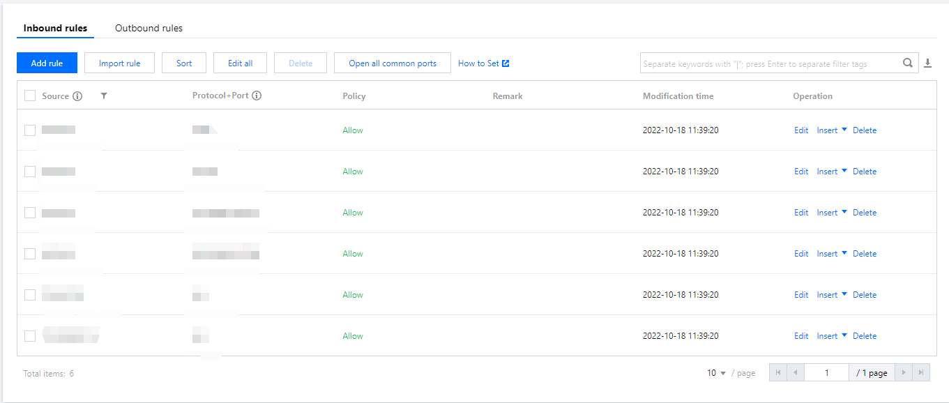 보안 그룹 규칙은 내보내기 기능을 지원하며, 로컬 백업을 위해 보안 그룹 아래의 보안 그룹 규칙을 내보낼 수 있습니다.