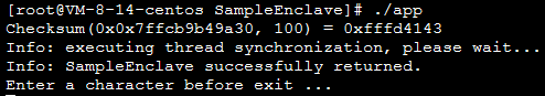 /opt/intel/sgxsdk/SampleCode입니다. 이 예시에서 코드(SampleEnclave)의 효과는 설치된 SGXSDK의 정상 사용 여부와 SGX CVM 인스턴스의 보안 메모리 리소스 사용 가능 여부를 확인하기 위해 Enclave를 실행하는 것입니다.source /opt/intel/sgxsdk/environment