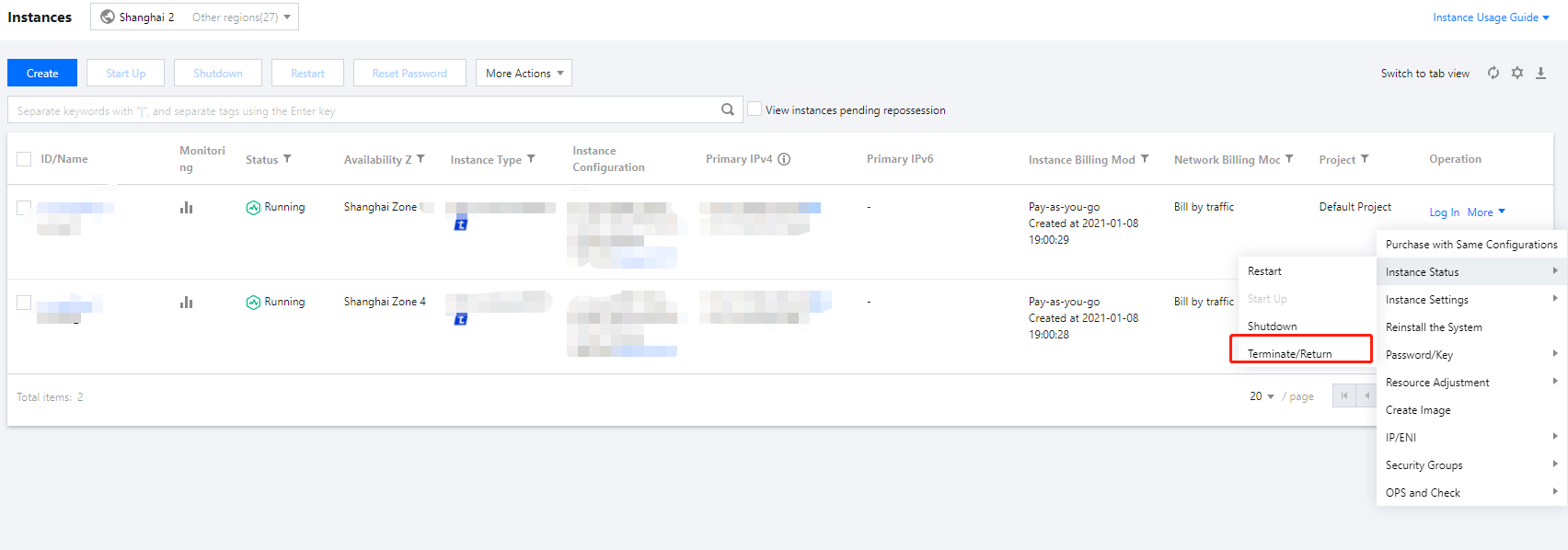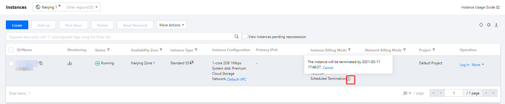 CVM 인스턴스 폐기/반환 시 영향은 관련 영향을 참고하십시오. 작업 단계