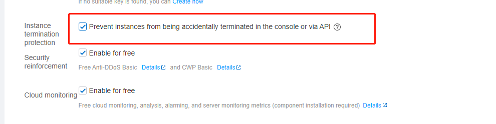 인스턴스 폐기 방지는 시스템 수준에서 적용되지 않습니다. 예를 들어, 종량제 인스턴스가 연체로 인해 종료되는 경우 보호가 적용되지 않습니다.