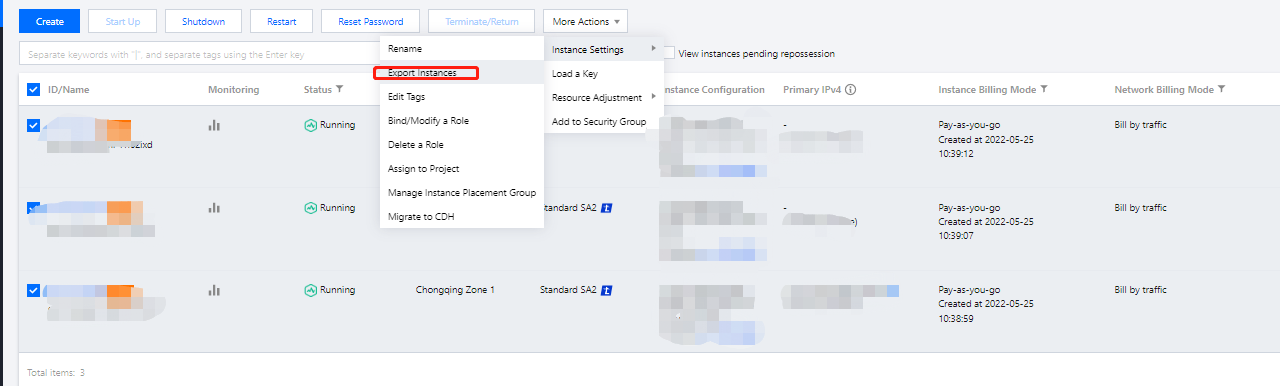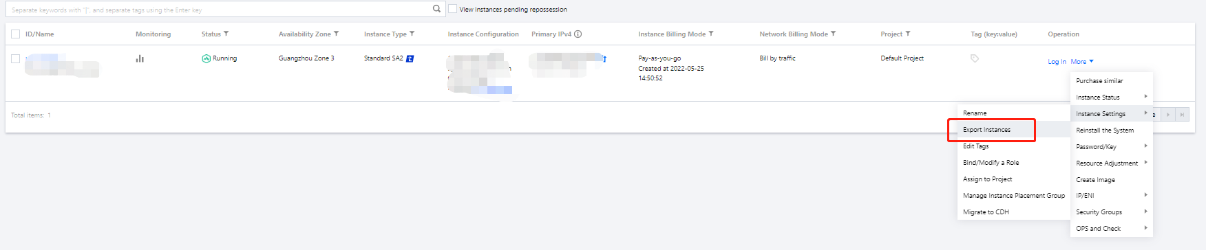 ‘인스턴스’ 페이지에서 타깃 인스턴스를 찾아 더 보기 > 인스턴스 설정 > 인스턴스 폐기 방지를 클릭합니다.
