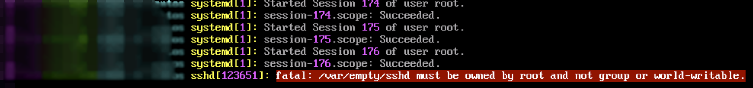 /var/empty/sshd/ 권한 문제로 인해 발생할 수 있습니다.