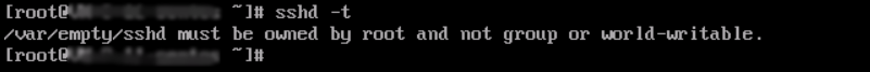 /var/empty/sshd 디렉터리의 권한을 확인합니다.ll -d /var/empty/sshd/