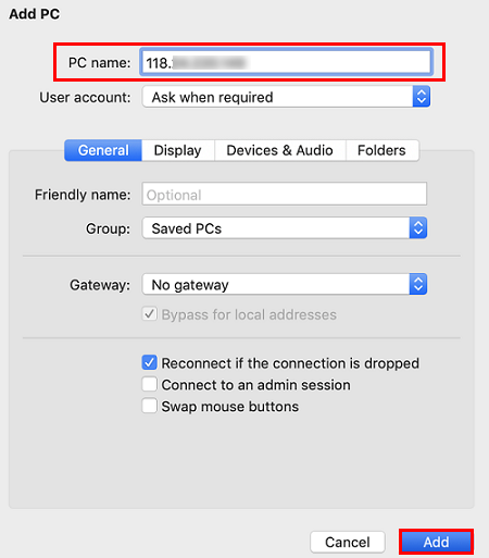 이하의 작업은 Microsoft Remote Desktop for Mac 기준 예시입니다. Microsoft는 2017년에 Remote Desktop 클라이언트의 다운로드 링크 제공을 중단하였고, 자회사인 HockeyApp에서 Beta 버전을 배포하고 있습니다. Microsoft Remote Desktop Beta에서 Beta 버전을 다운로드 받으실 수 있습니다. 다음의 작업은 Windows Server 2012 R2 운영 체제의 CVM을 예시로 사용합니다.
