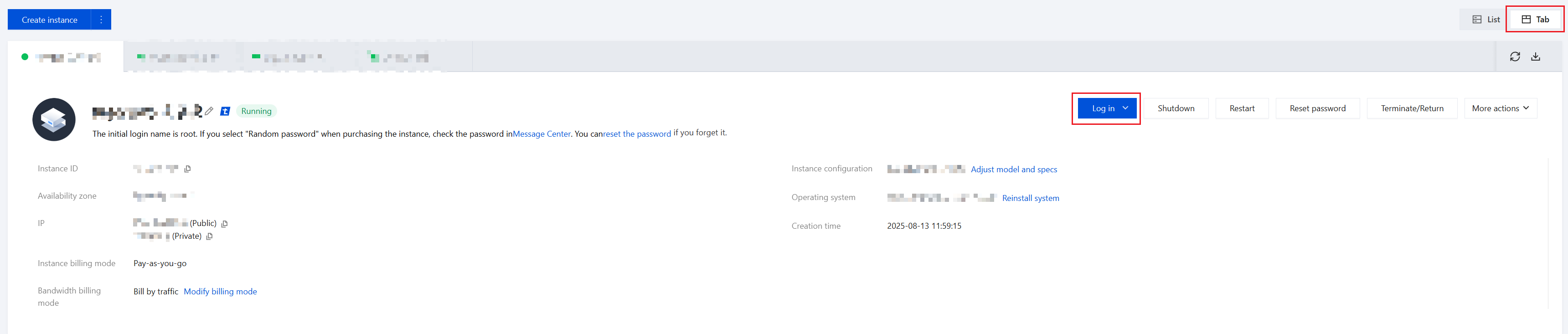 2. 인스턴스 관리 페이지에서 실제 사용 중인 보기 모드에 따라 작업을 진행합니다.