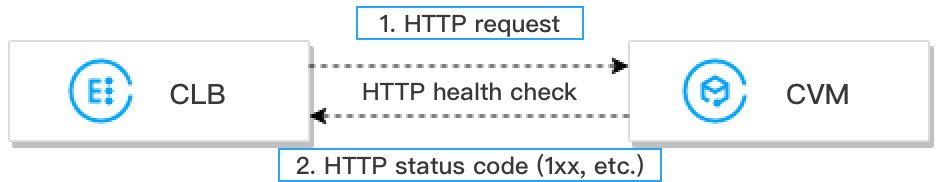 HTTP 상태 확인 메커니즘은 다음과 같습니다. 1. 상태 확인 구성에 따라 CLB 인스턴스는 HTTP 요청(대상 도메인 이름이 지정됨)을 백엔드 CVM 인스턴스(사설망 IP+상태 확인 포트+확인 경로)로 보낼 수 있습니다.