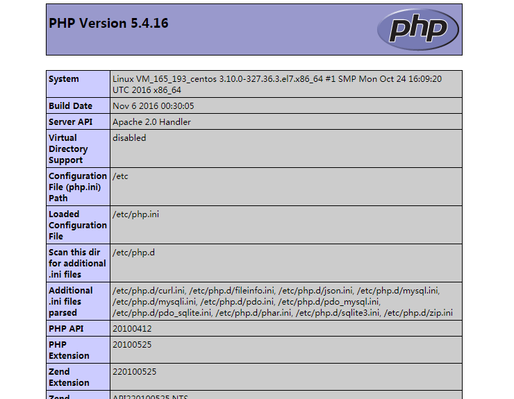 3. 사용자 로컬 브라우저에 http://xxx.xxx.xxx.xxx/info.php를 입력하면(이 중, xxx.xxx.xxx.xxx는 사용자의 CVM 공인 IP 주소입니다), 다음 화면이 나타나면서 LAMP 서비스 배포에 성공합니다.