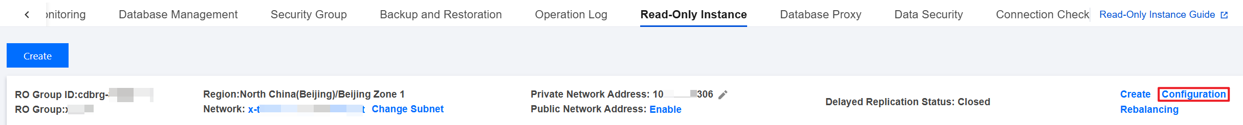 읽기 전용 인스턴스를 생성하려면 먼저 원본 인스턴스를 생성해야 합니다. 자세한 내용은 MySQL 인스턴스 생성을 참고하십시오. 읽기 전용 인스턴스 RO 그룹 생성