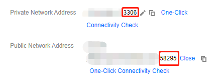 MySQL 외부 네트워크 포트는 시스템에 의해 자동으로 할당되며 사용자 정의를 지원하지 않습니다. 외부 네트워크 활성화 후 보안 그룹의 네트워크 액세스 정책에 의해 제어됩니다. 보안 정책 구성 시 내부 네트워크 액세스 포트 3306을 개방해야 합니다.