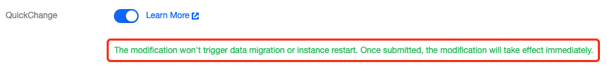 일부 QuickChange 시나리오는 재시작하지 않으며 이 경우 제출한 변경은 설정 변경이 완료된 후 바로 적용됩니다. 다음 이미지를 참고하십시오.