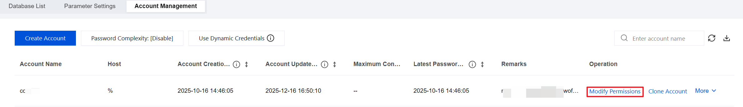 클라우드 데이터베이스 인스턴스 계정 권한 수정 |