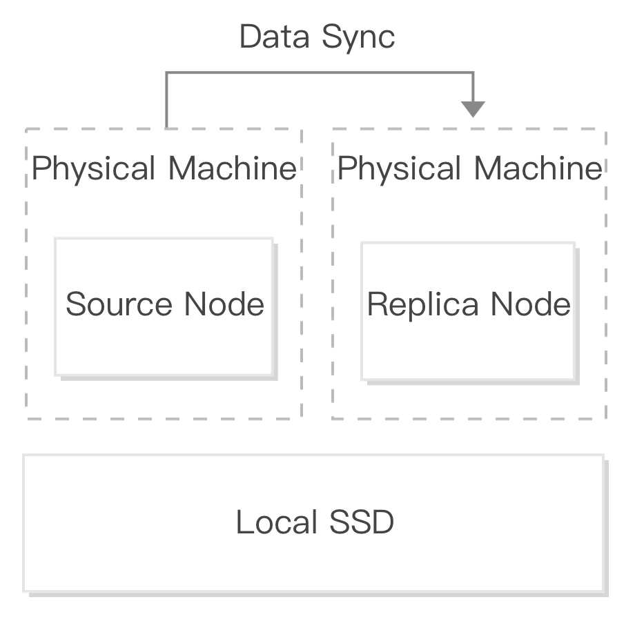 마스터-슬레이브 복제 방식: 비동기, 반동기(기본값). 복제 방식은 콘솔의 인스턴스 상세 페이지에서 변경할 수 있습니다. 또한 콘솔에서 3노드로 업그레이드 작업을 수행할 때 복제 방식을 변경할 수 있습니다. 2노드 아키텍처는 읽기 전용 인스턴스, 재해 복구 인스턴스, 보안 그룹, 데이터 마이그레이션 및 다중 AZ 배포를 포함한 완전한 기능 세트를 지원합니다. 자세한 내용은 제품 장점을 참고하십시오. 2노드 인스턴스는 데이터 지속성을 보장하기 위해 여러 복제본을 제공합니다. 원본 노드 데이터는 복제본 노드와 동기화할 수 있습니다. 원본 인스턴스 데이터는 읽기 전용 인스턴스(있는 경우)와 동기화할 수 있습니다. 이 아키텍처는 데이터 보안을 보장하고 최대 99.99999%의 데이터 지속성을 구현합니다.