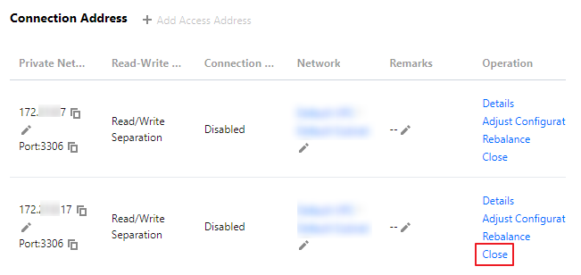 장애 조치(읽기-쓰기 속성이 읽기/쓰기 분리임) | 이 기능을 활성화할지 여부를 설정할 수 있습니다. 활성화된 후 데이터베이스 프록시가 실패하면 데이터베이스 프록시 주소가 소스 인스턴스로 요청을 라우팅합니다. |