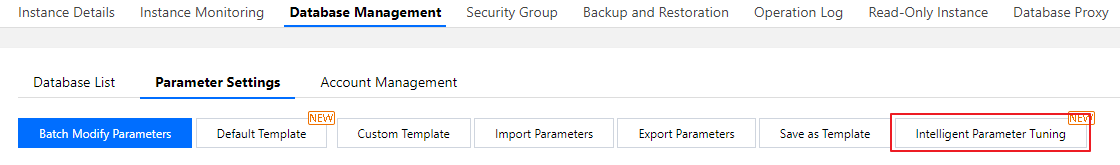 2. 인스턴스 관리 페이지에서 데이터베이스 관리 > 매개변수 설정 > 스마트 매개변수 튜닝을 선택합니다.