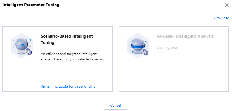 3. 스마트 매개변수 튜닝 팝업 창에서 시나리오 기반 스마트 튜닝 또는 AI 기반 스마트 분석을 튜닝 방법으로 선택하고 분석을 클릭합니다.