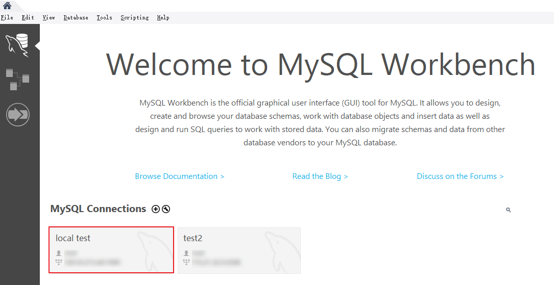 7. MySQL Workbench 홈페이지로 돌아가 방금 구성된 인스턴스를 클릭하여 연결합니다.