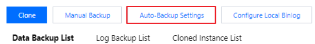 1. MySQL 콘솔에 로그인한 뒤 인스턴스 리스트에서 인스턴스 ID를 클릭하고, 관리 페이지로 이동하여 백업 복구 > 자동 백업 설정을 선택합니다. 2. 백업 설정 팝업 창에서 데이터 백업 보관 기간 및 주기를 설정하거나 로그 백업 보관 기간을 설정하고, 대상 콜드 스토리지로의 전환 정책을 선택한 후 일 수를 지정합니다.