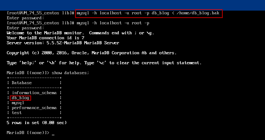 1. CVM에 로그인한 뒤, MySQL TCCLI인 mysqldump로 가져올 SQL 파일을 생성합니다. CDB의 db_blog 데이터베이스를 예시로 사용합니다. 2. MySQL TCCLI를 통해 타깃 데이터베이스로 데이터를 복원합니다.