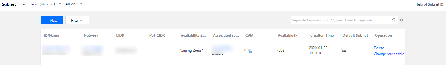 3. 추가할 CVM의 서브넷이 위치한 행에서 CVM 추가 아이콘을 클릭합니다.