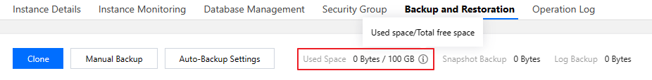 단일 노드 클라우드 디스크 인스턴스의 실제 사용 공간과 무료 공간은 별도로 구현되며 단일 노드 클라우드 디스크 인스턴스의 백업 복구 페이지에서 확인할 수 있습니다.