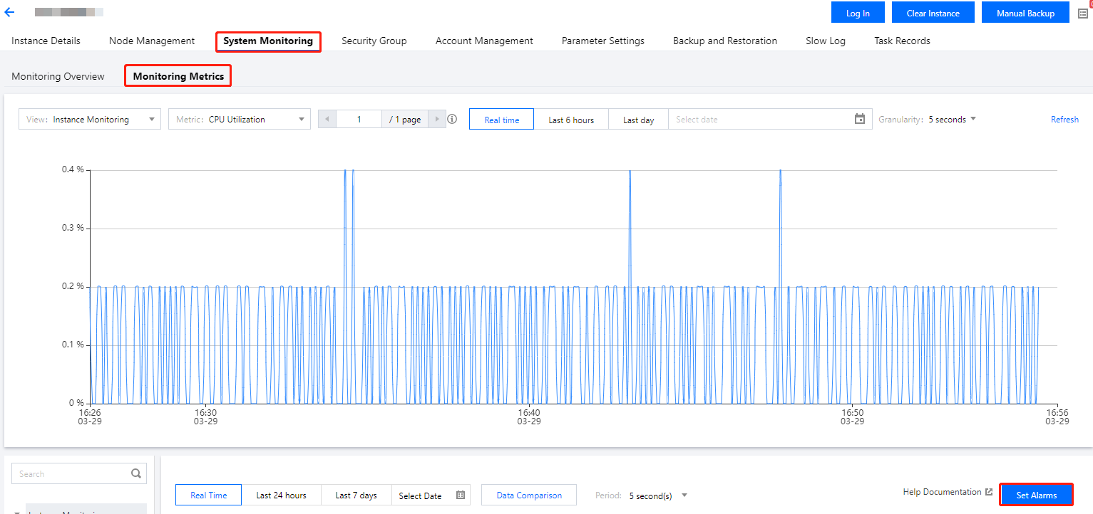 Alarm Object | If you select Instance ID, the alarm policy will be bound to the specified database instance. If you select Instance Group, the alarm policy will be bound to the specified database instance group. For more information on how to create an instance group, see Instance Group. If you select All Objects, the alarm policy will be bound to all instances the current account has permission on. If you select Tag, the alarm policy will be bound to all instances associated with the current tag key and tag value. |