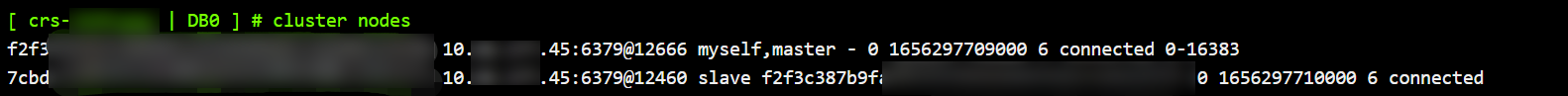 Information of the cluster's master node corresponding to the slot range, including the private IPv4 address, port, and node ID.
