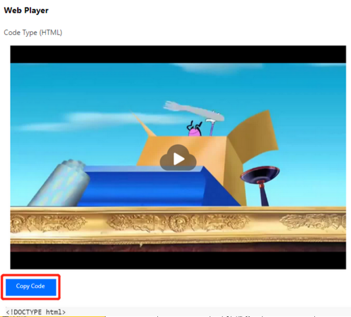 6. 코드 복사를 클릭하면 생성된 Web 플레이어 코드가 복사됩니다.