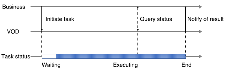 비디오 처리 작업이 시작된 후 작업이 실행을 완료하고 결과를 출력하는 데 몇 분에서 몇 시간이 걸립니다. 비디오 처리는 기본적으로 오프라인 작업입니다. VOD는 영상 처리 작업의 특성을 고려하여 작업을 동기적으로 시작하고 작업 실행 결과 알림을 비동기적으로 받을 수 있는 작업 시스템을 제공합니다.