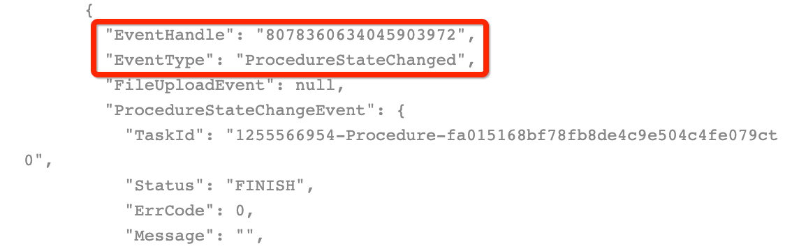 이렇게 신뢰할 수 있는 콜백 메소드에서 ‘비디오 업로드 완료’ 및 ‘태스크 플로우 상태 변경’이라는 두 가지 알림을 가져왔습니다. 다음으로 가져온 이벤트 알림을 즉시 확인해야 합니다.