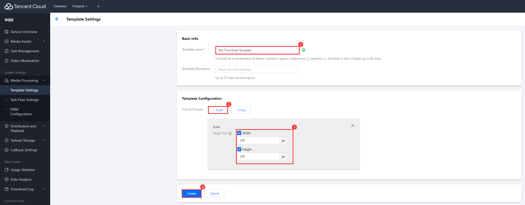 VOD의 API를 호출하여 영상 처리 템플릿을 생성할 수도 있습니다. 자세한 내용은 VOD API를 참고하십시오. 3단계: 실시간 이미지 처리