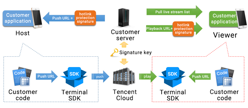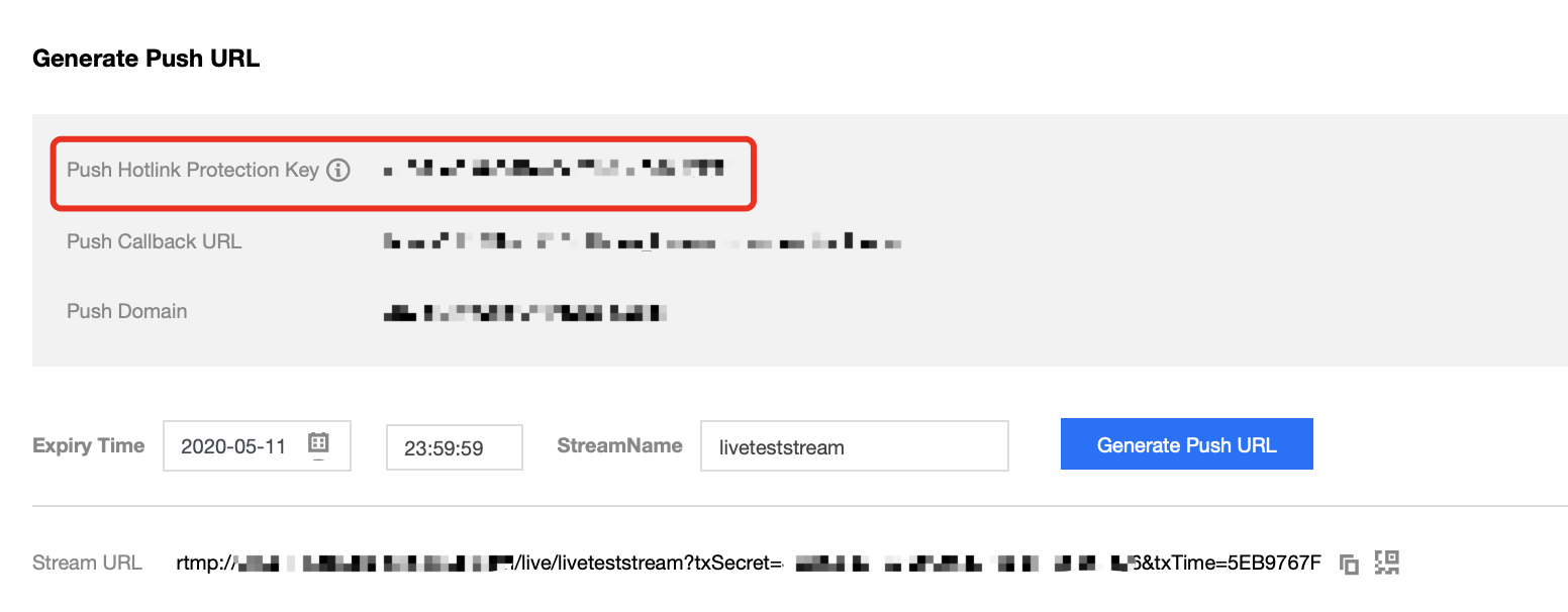 보안 링크 도용 방지란 푸시 스트림과 재생 URL에 있는 txSecret 필드를 말하며, 해커가 백그라운드를 위조하여 푸시 스트림 URL을 생성하거나 재생 주소를 불법으로 탈취하여 이익을 추구하는 것을 방지합니다.