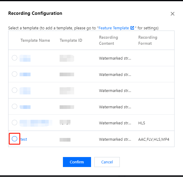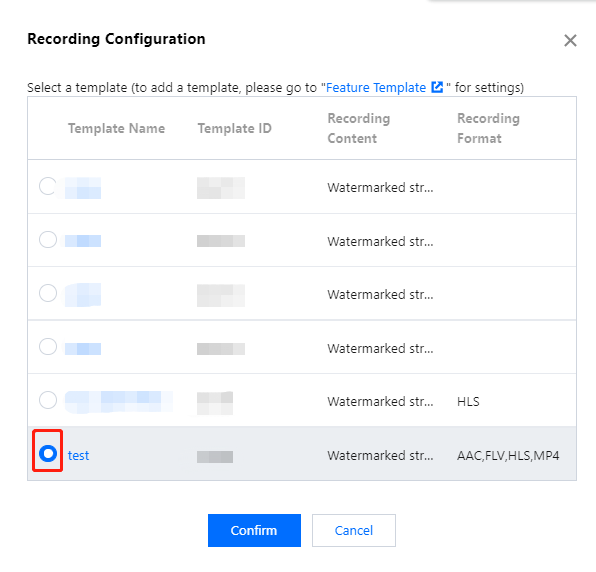3. 녹화 구성 템플릿을 선택하고 확인을 클릭합니다.