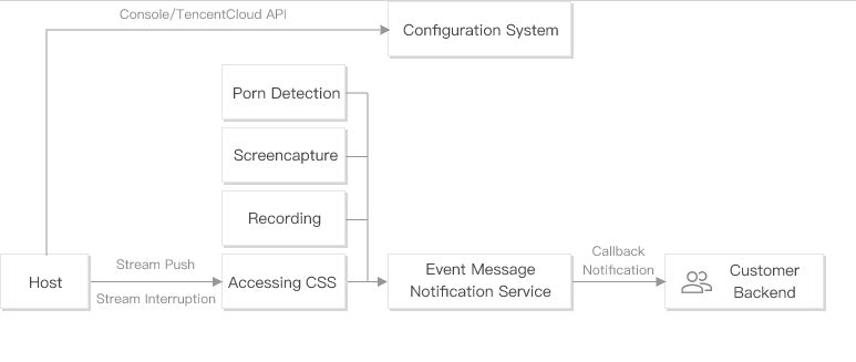 1. 콘솔 또는 클라우드 API 직접 호출을 통해 호스트가 이벤트 메시지 알림 URL과 녹화, 화면 캡처 등 관련 기능을 설정합니다.