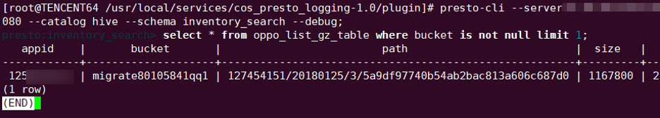 cosn://schema 뒷부분을 사용자 빅 데이터 비즈니스의 버킷 경로로 변경하십시오.CREATE TABLE `report.report_o2o_pid_credit_detail_grant_daily`(`cal_dt` string,`change_time` string,`merchant_id` bigint,`store_id` bigint,`store_name` string,`wid` string,`member_id` bigint,`meber_card` string,`nickname` string,`name` string,`gender` string,`birthday` string,`city` string,`mobile` string,`credit_grant` bigint,`change_reason` string,`available_point` bigint,`date_time` string,`channel_type` bigint,`point_flow_id` bigint)PARTITIONED BY (`topicdate` string)ROW FORMAT SERDE'org.apache.hadoop.hive.ql.io.orc.OrcSerde'STORED AS INPUTFORMAT'org.apache.hadoop.hive.ql.io.orc.OrcInputFormat'OUTPUTFORMAT'org.apache.hadoop.hive.ql.io.orc.OrcOutputFormat'LOCATION'cosn://examplebucket-1250000000/user/hive/warehouse/report.db/report_o2o_pid_credit_detail_grant_daily'TBLPROPERTIES ('last_modified_by'='work','last_modified_time'='1589310646','transient_lastDdlTime'='1589310646')