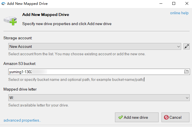 3rd party 상용화 유료 툴을 사용해 COS를 Windows 서버에 마운트한 후 로컬 디스크로 매핑할 수도 있습니다. 다음 작업은 TntDrive 툴 예시입니다.