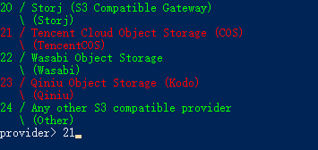 8. 표시되는 옵션에서 ‘TencentCOS’가 포함된 옵션(즉, 21 입력)을 선택한 다음 Enter를 누릅니다.