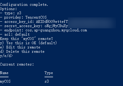10. access_key_id>가 표시되면 COS의 SecretId를 입력하고 Enter를 누릅니다.