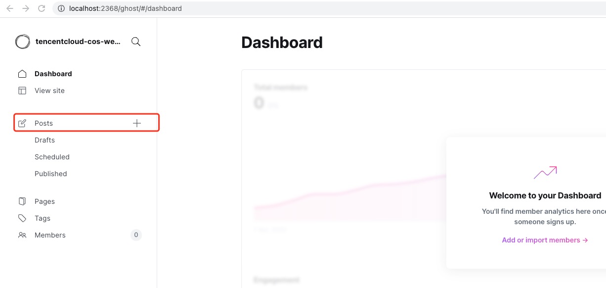 1. Ghost 콘솔에서 +를 클릭하여 게시물을 게시합니다.