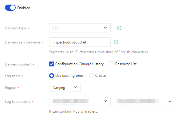 1. Config 콘솔에서 설정 > 전송 서비스를 클릭합니다. 활성화한 후 구성 점검 결과가 CLS에 전송됩니다. 주의: